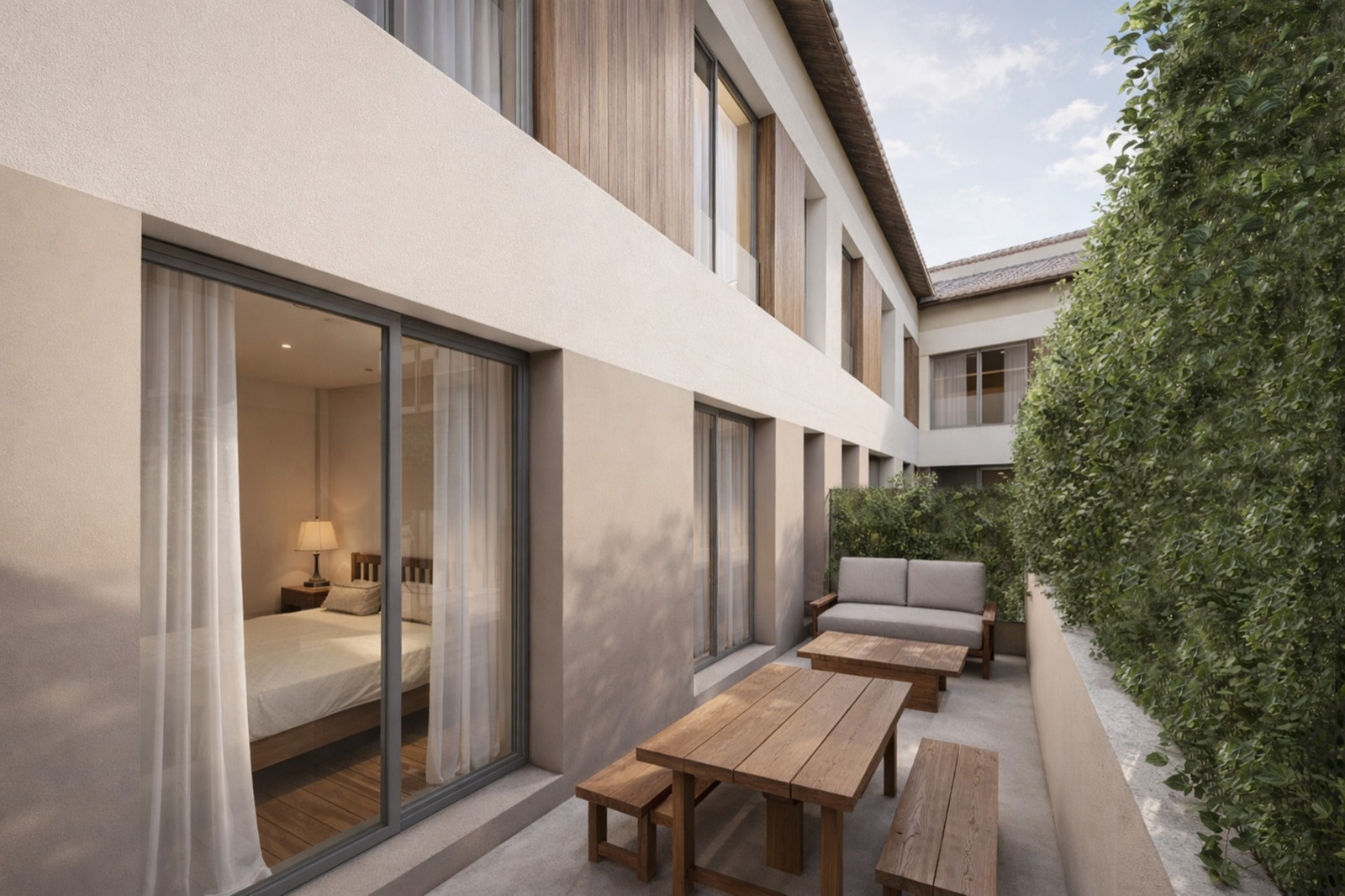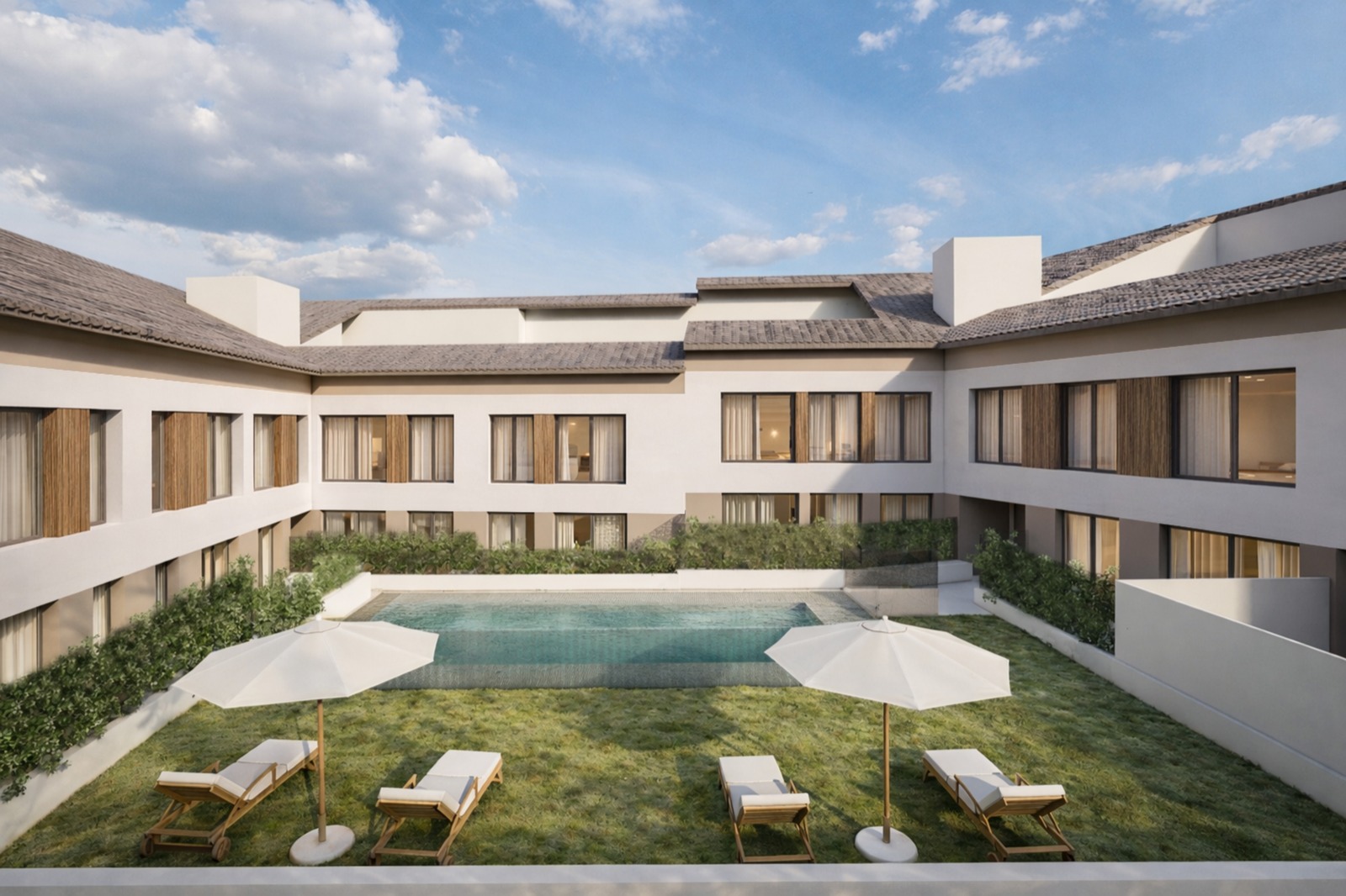 Áreas ajardinadas y espacios de descanso, donde disfrutar al aire libre en un entorno privado y cuidado.